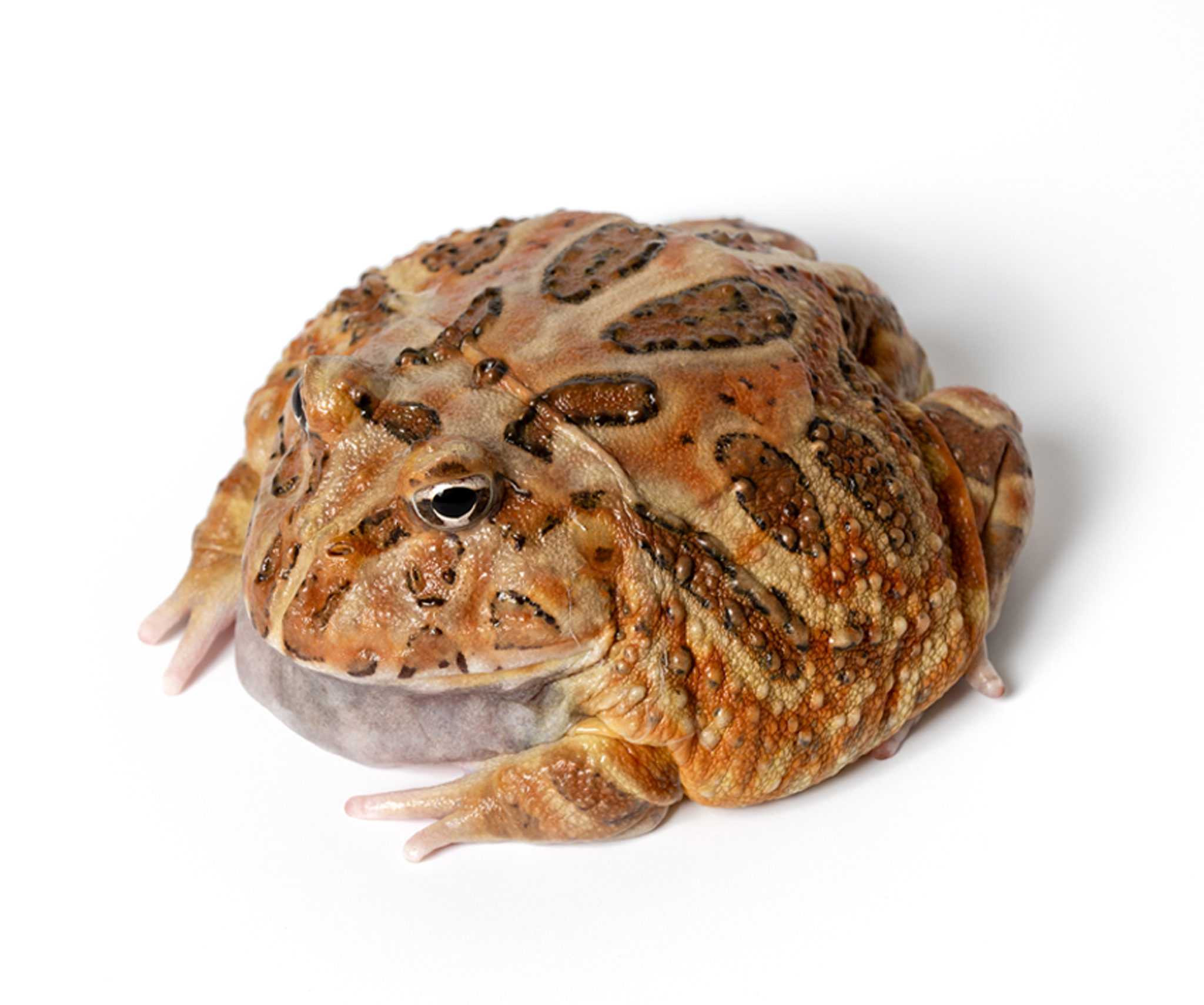 Coffee Horned Frog (Ceratophrys cranwelli) The base color is brown or dark red, with black or dark green spots, and sometimes we may get copper color from Coffee batch. > Size: 4cm > Feeding method: had several meals (frozenfish+ complex vitamin +calcium)